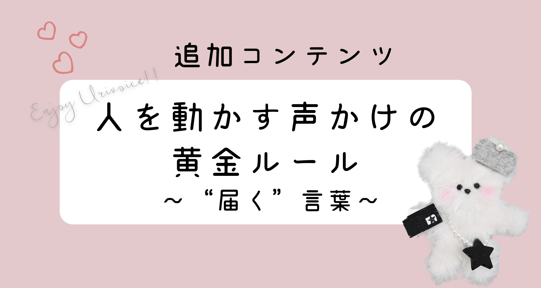 【追加コンテンツ】人を動かす声かけ の黄金ルール 〜“届く”言葉〜